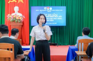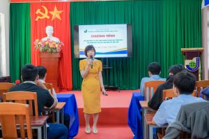 Ms. Nguyen Thi Hung – Deputy Secretary of the Youth Union and President of the Student Association shares the topic “Innovation Activities of the Youth Union” at the program