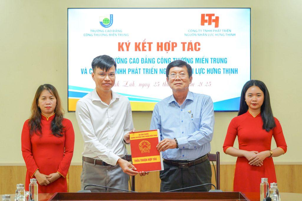 On the morning of July 25, 2025, at room 208A2, Campus 2, MienTrung Industry and Trade College (MITC) hosted a signing ceremony for a cooperation agreement between the College and Hung Thinh Human Resources Development Co., Ltd. This event marks a crucial milestone in the College’s strategy to expand its network of industry-education partnerships, while also bringing numerous employment, internship, and recruitment opportunities to its students.
